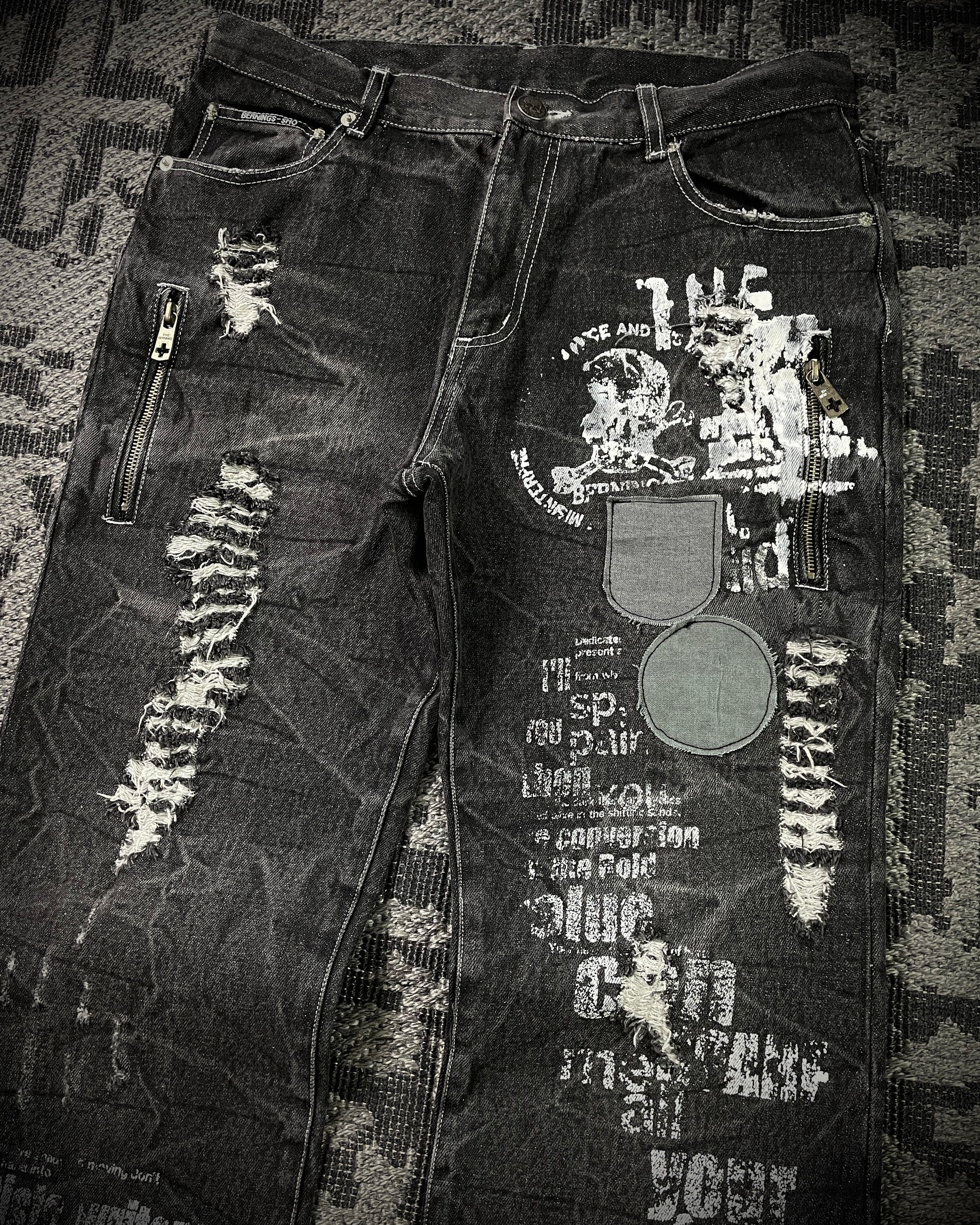 Bernnings Sho Silver Stitch Multi-zip Distressed Poem Bootcut Jeans
