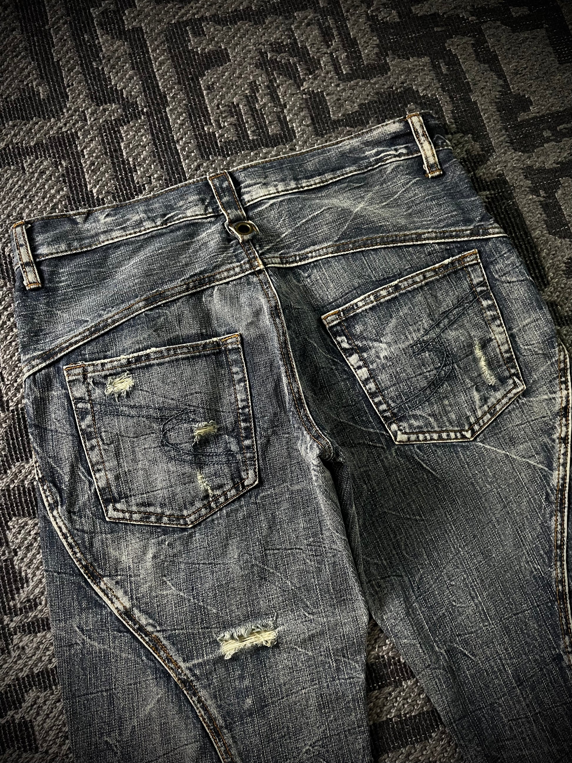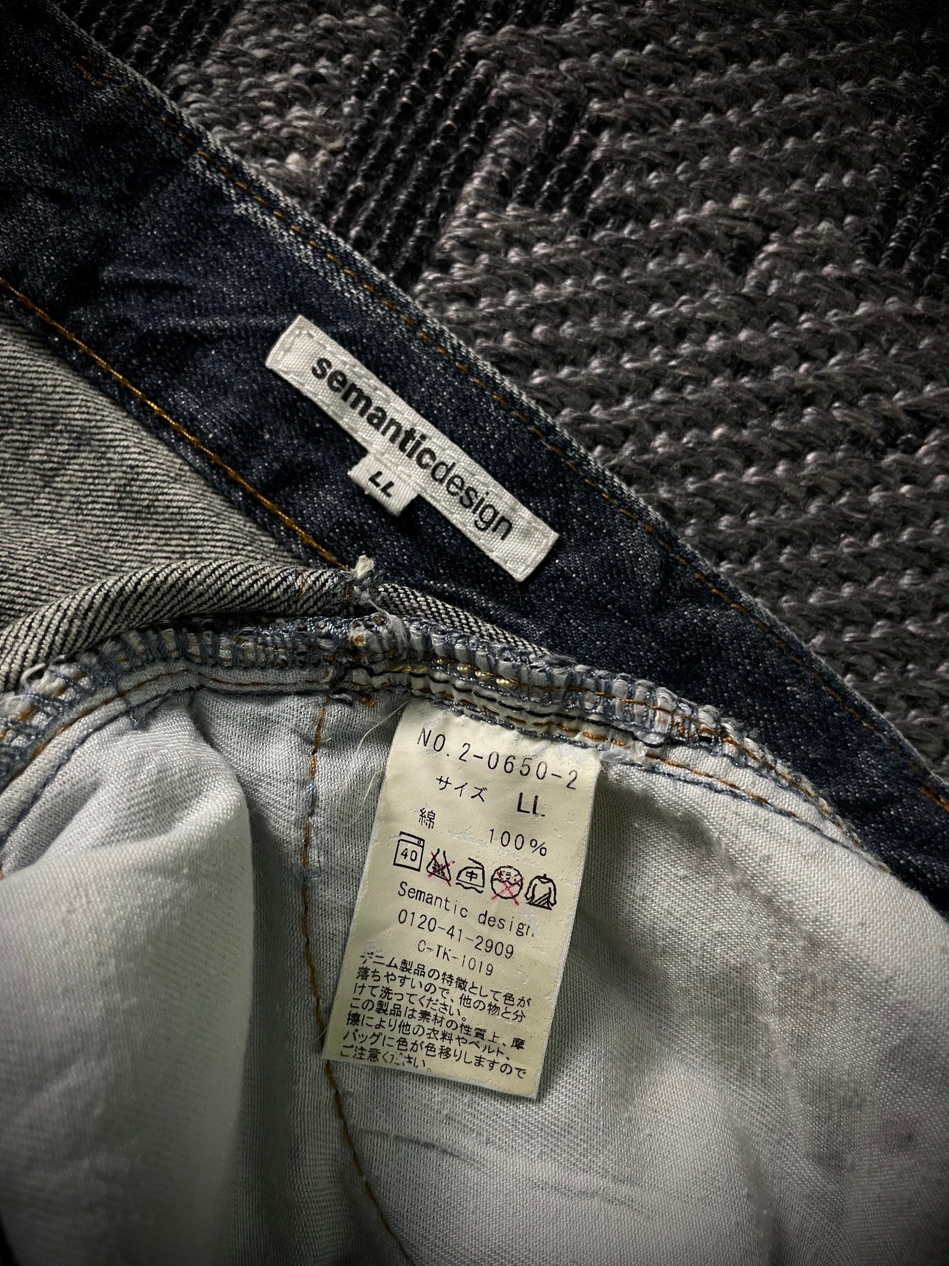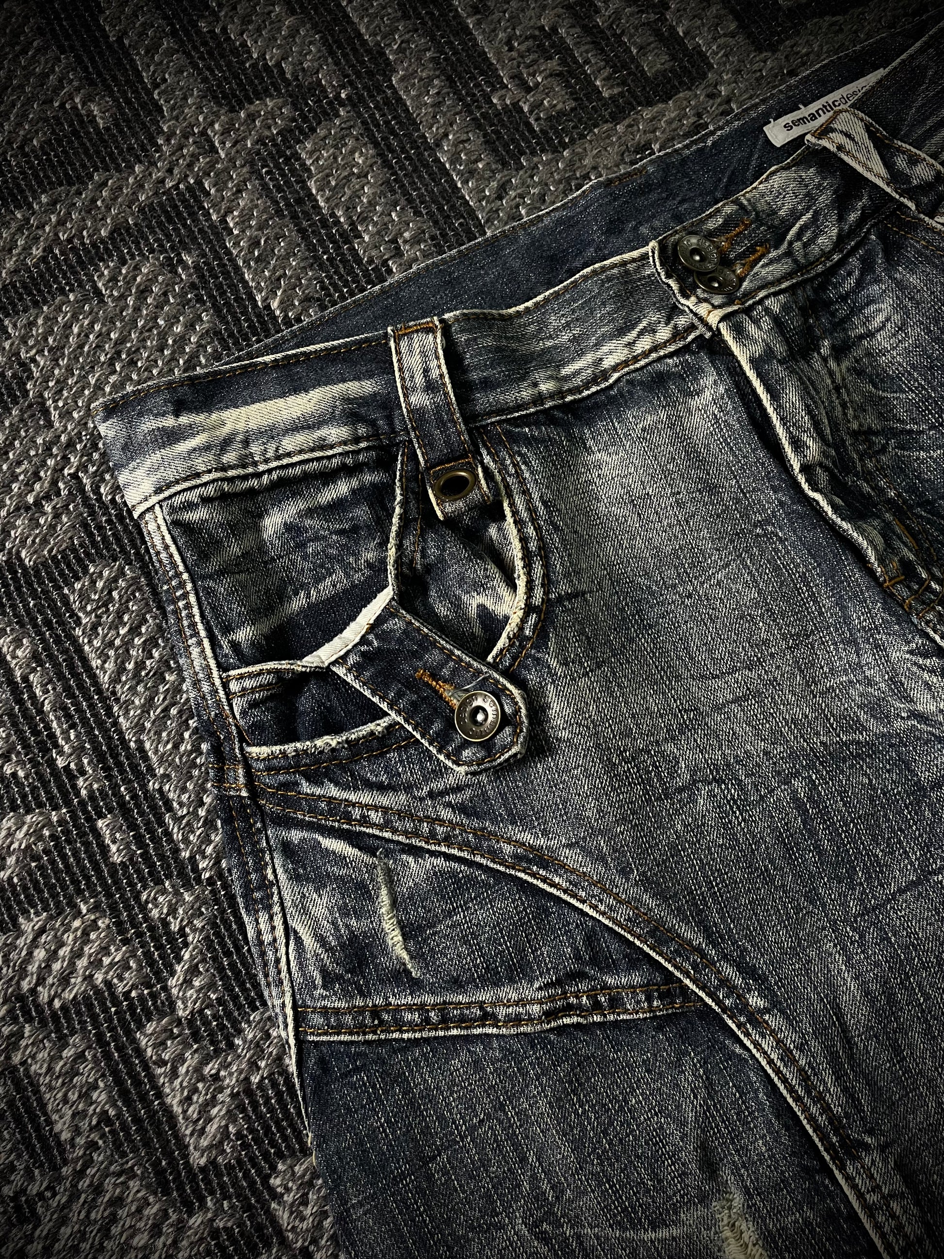Semantic Design Multi Panel Crinkle Washed Distressed Flared Jeans